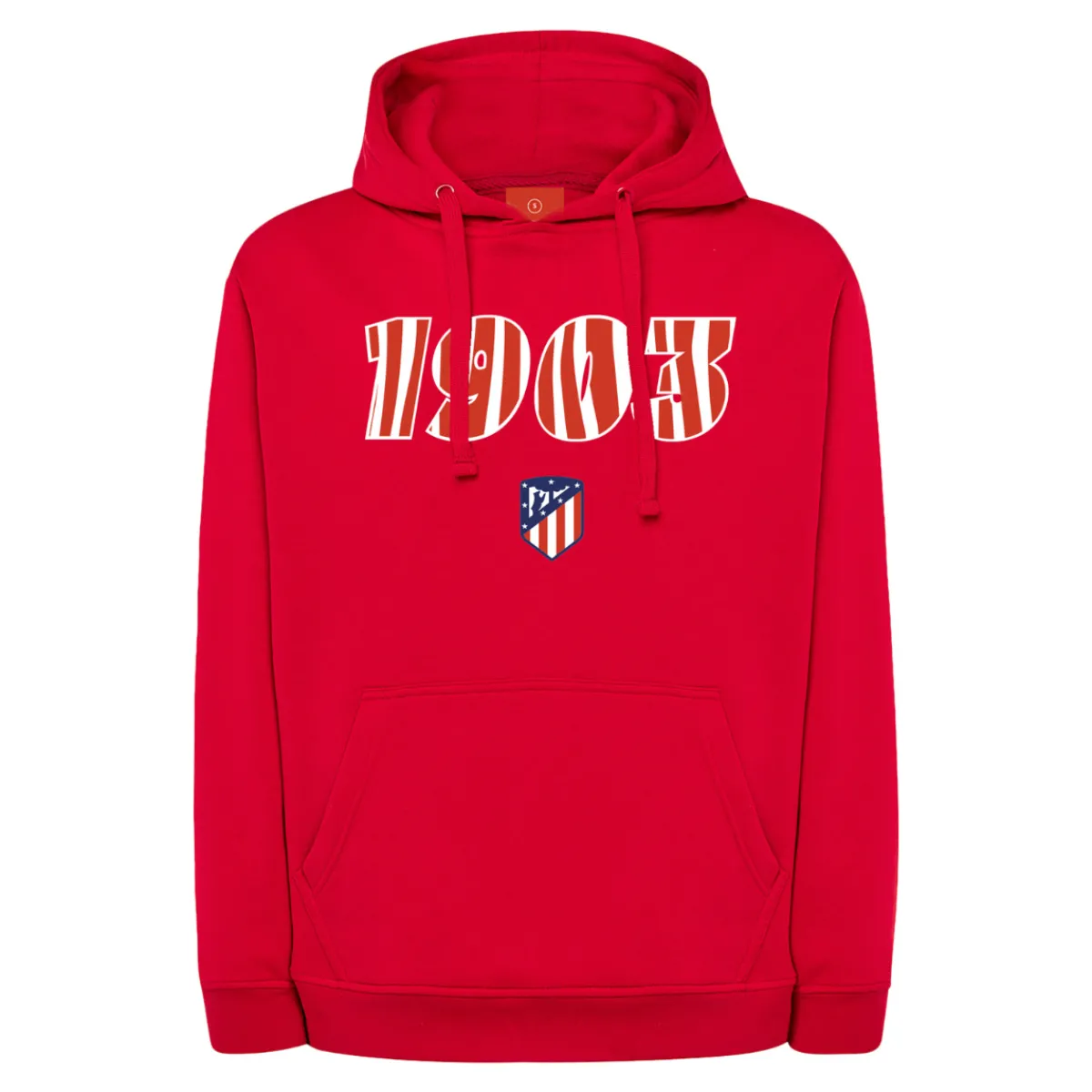 Sudadera de niño roja con el año de fundación en colores rojiblancos y el escudo en el pecho.