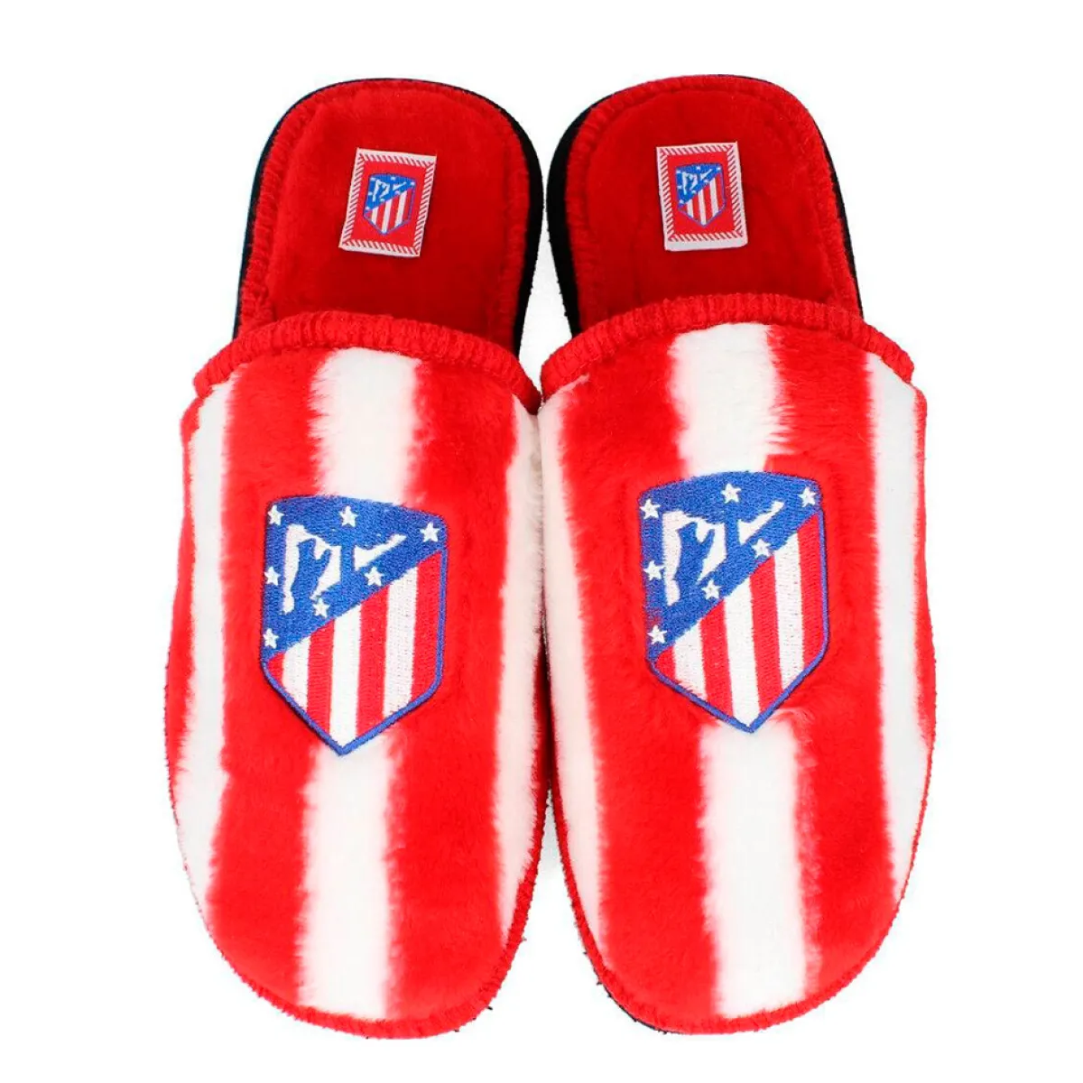 Zapatillas de casa abiertas para adulto de la primera equipación del Atlético de Madrid.