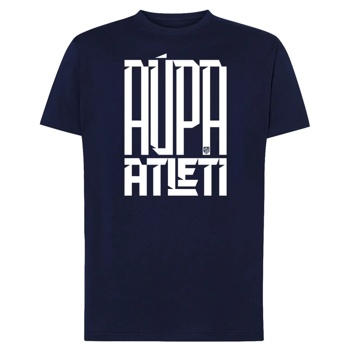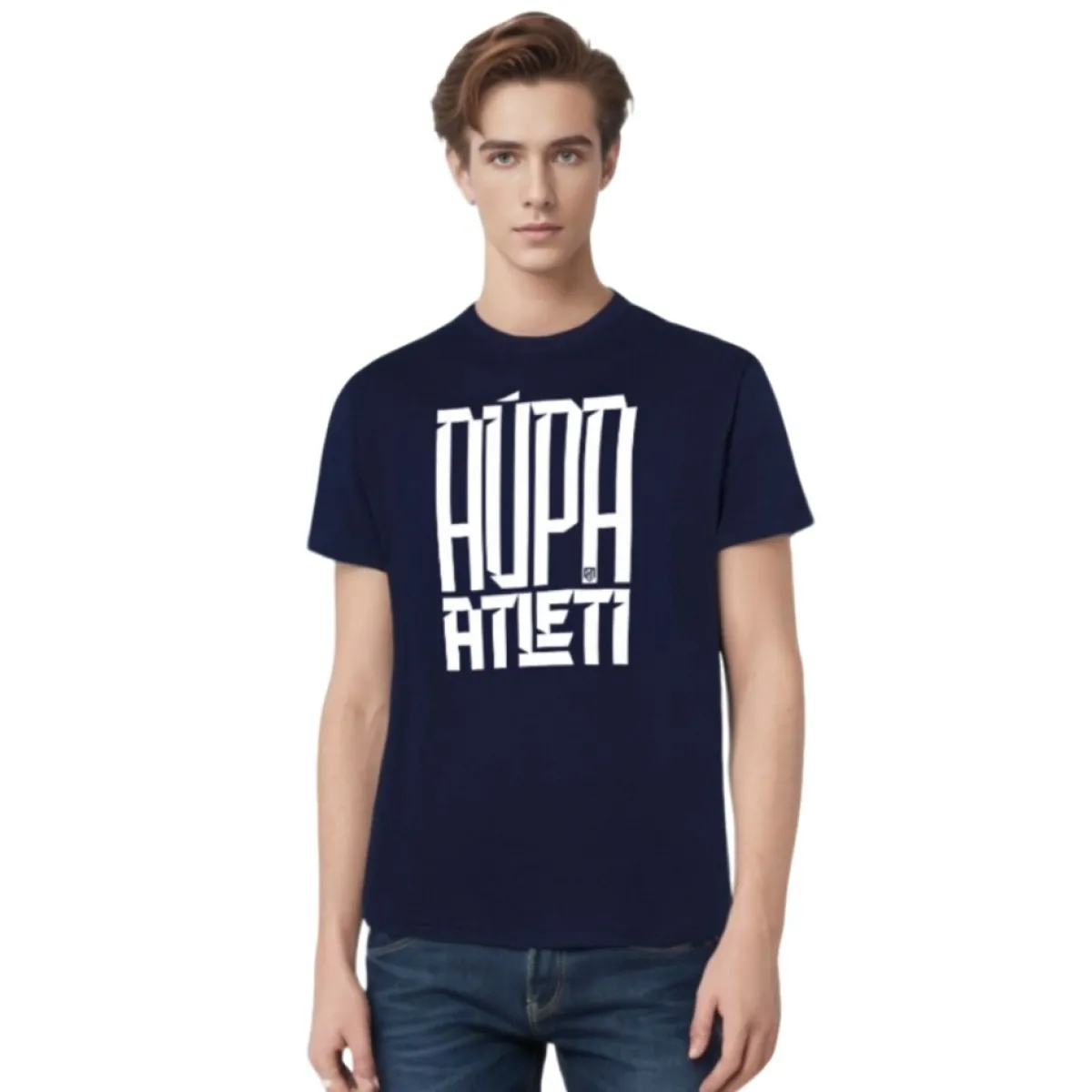 Presentamos la camiseta Aúpa Atleti en color azul marino, una prenda esencial para todos los aficionados del Atlético de Madrid.