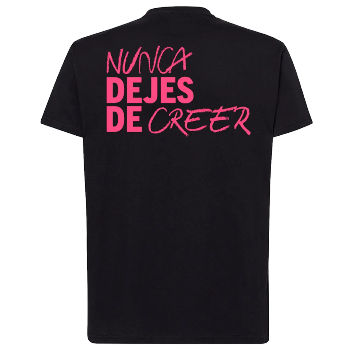 Presentamos la camiseta básica negra con el inspirador mensaje Nunca dejes de creer, ideal para los apasionados del Atlético de Madrid que quieren llevar su amor por el equipo de manera elegante y significativa.