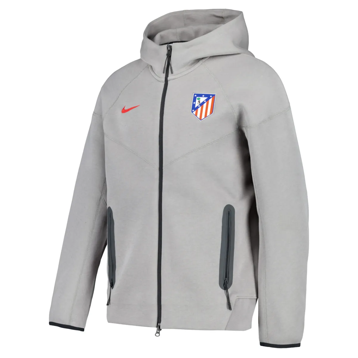 La Chaqueta Tech Fleece UEFA Gris es la prenda ideal para los seguidores del Atlético de Madrid que buscan una mezcla de estilo, confort y rendimiento.