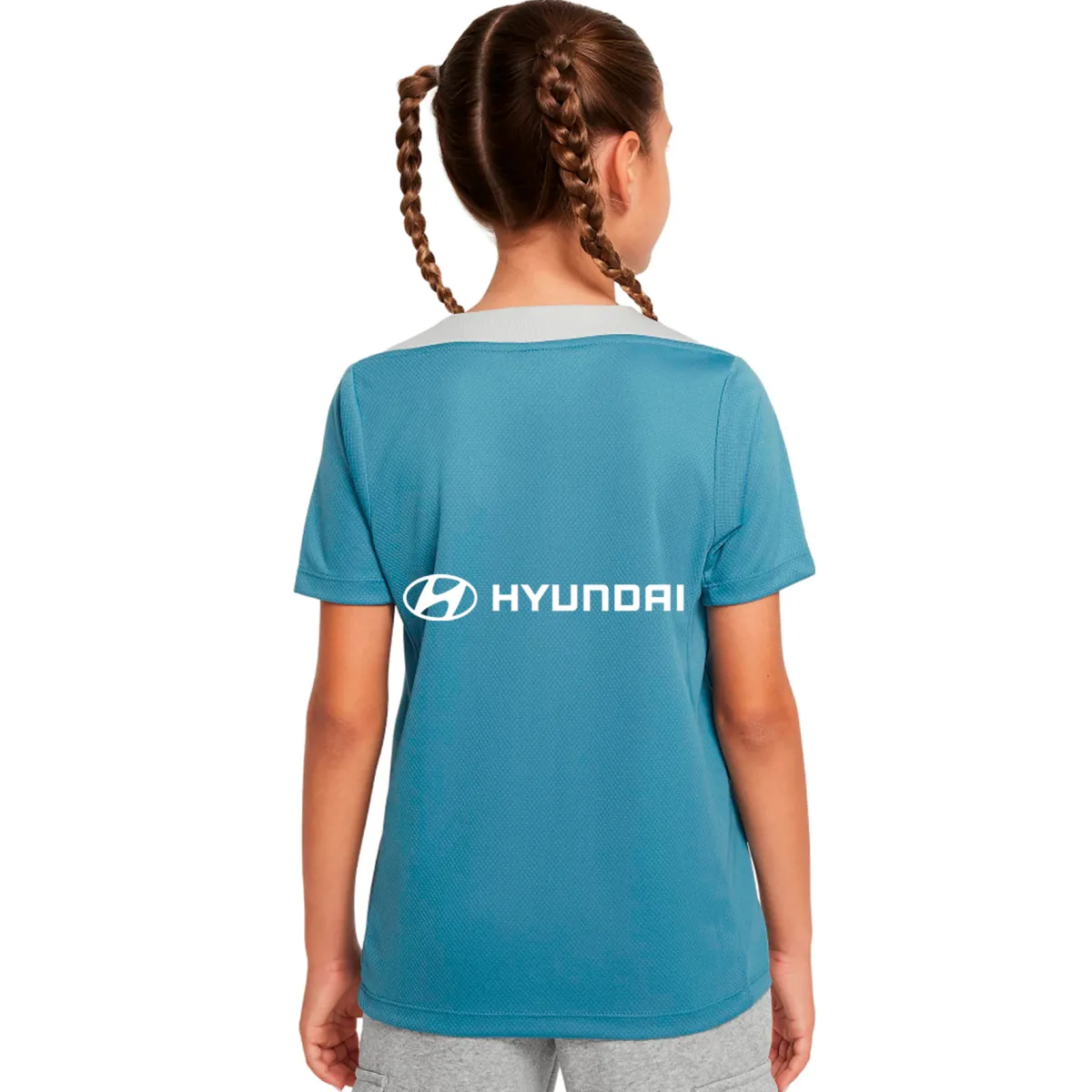 La camiseta está disponible en un atractivo color Noise Aqua con detalles en Light Iron Ore y Carmesí claro, añadiendo un toque moderno y vibrante. Cada detalle ha sido cuidadosamente pensado para inspirar a las futuras estrellas del fútbol, brindando no solo funcionalidad, sino también un estilo que destaca.