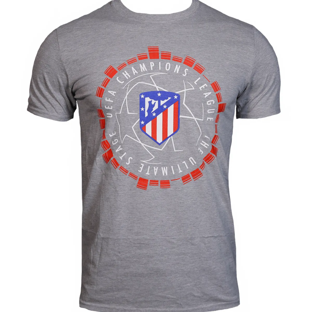 Camiseta de niñoen color gris del Atlético de Madrid y la UEFA Champions League.