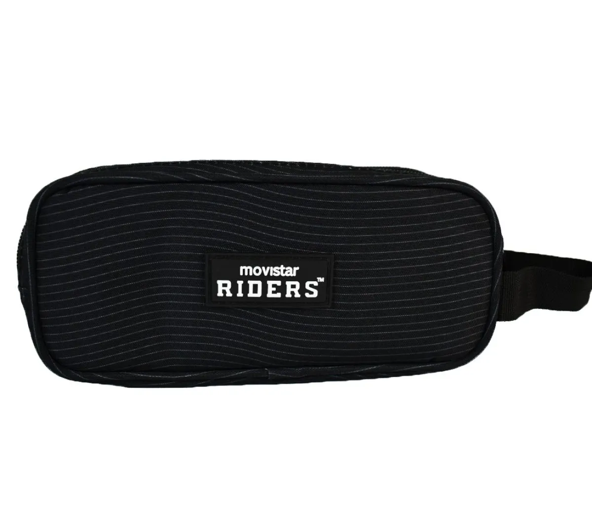 Estuche portatodo en color negrocon tres compartimentos del club de esports Movistar Riders y el Atlético de Madrid.