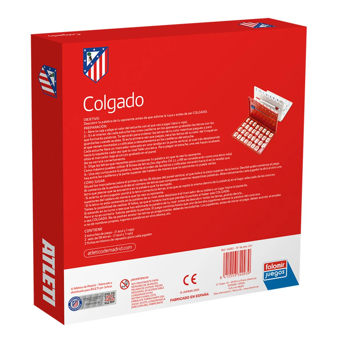 Fabricado en cartón y plástico de alta calidad, ‘Colgado’ es un juego diseñado para durar, lo que garantiza horas de entretenimiento.