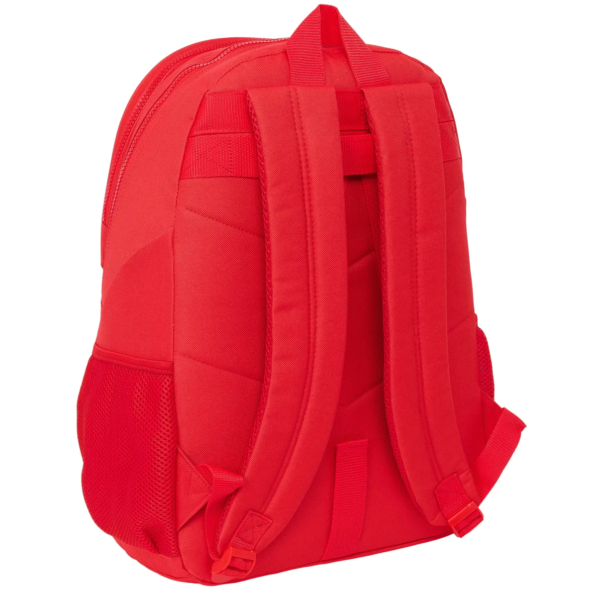 Con una capacidad de 22,5 litros y un peso ligero de 600 gramos, es el complemento ideal para cualquier aficionado al Atleti. ¡Lleva tu pasión por el club a la escuela con estilo y comodidad!