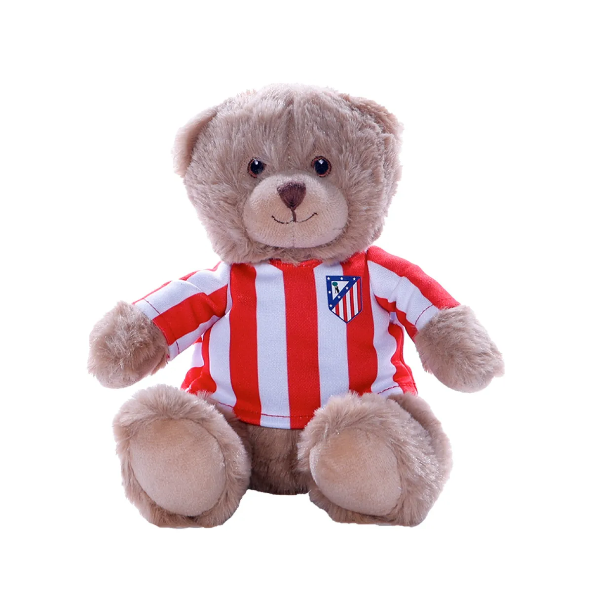 Osito de peluche marrón con la camiseta del Atlético de Madrid.