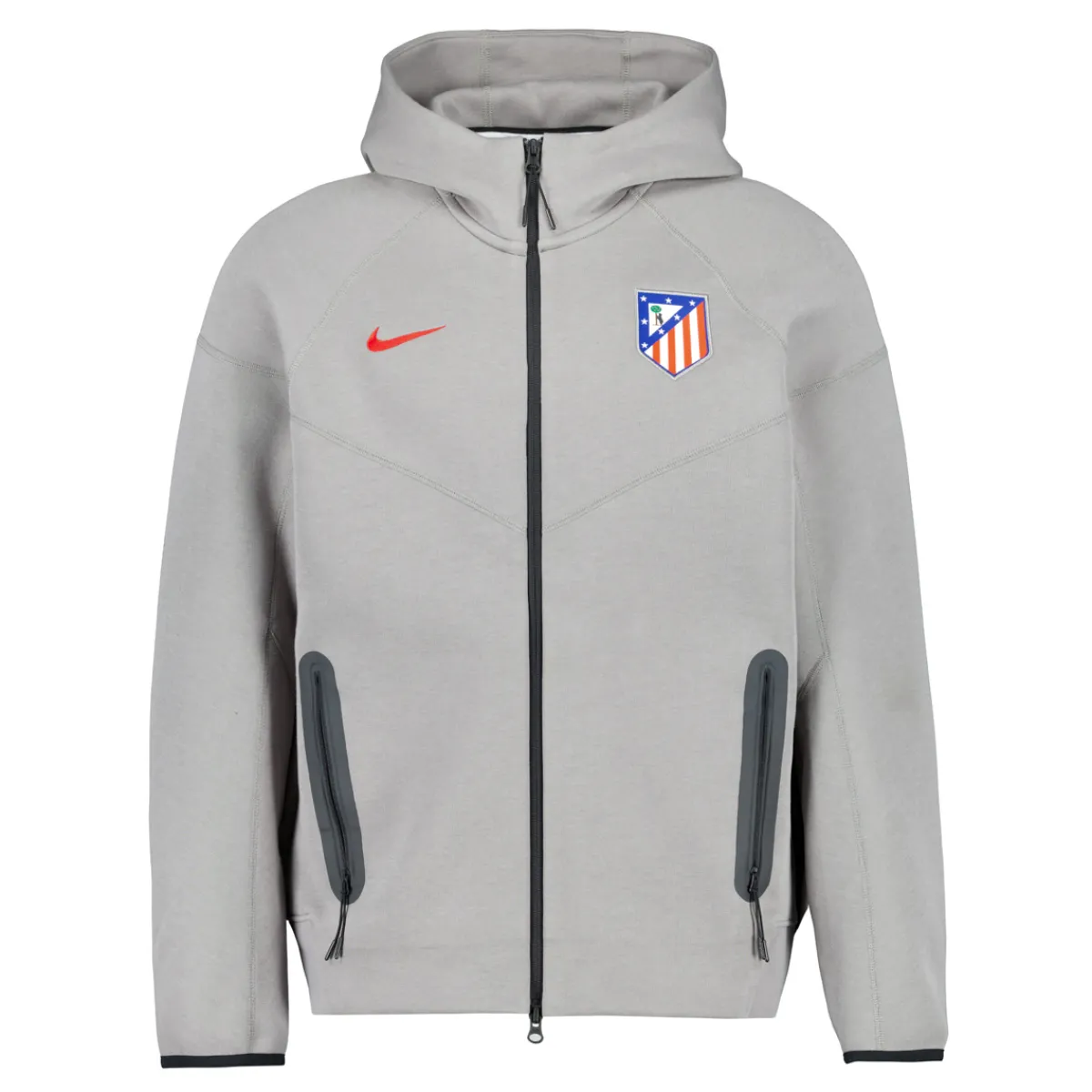 La Chaqueta Tech Fleece UEFA Gris es la prenda ideal para los seguidores del Atlético de Madrid que buscan una mezcla de estilo, confort y rendimiento.